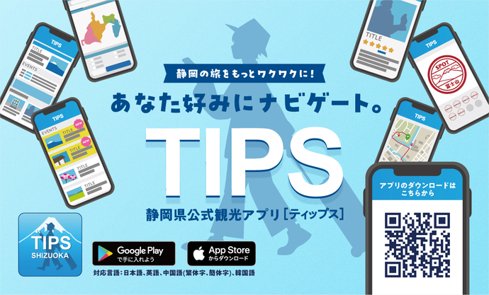 • 静岡県公式観光アプリTIPS(外部リンク)をダウンロードしてお楽しみいただきます。